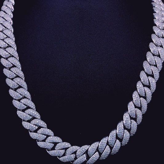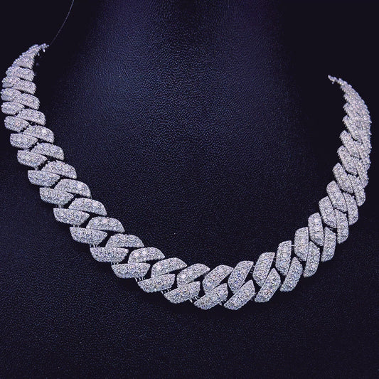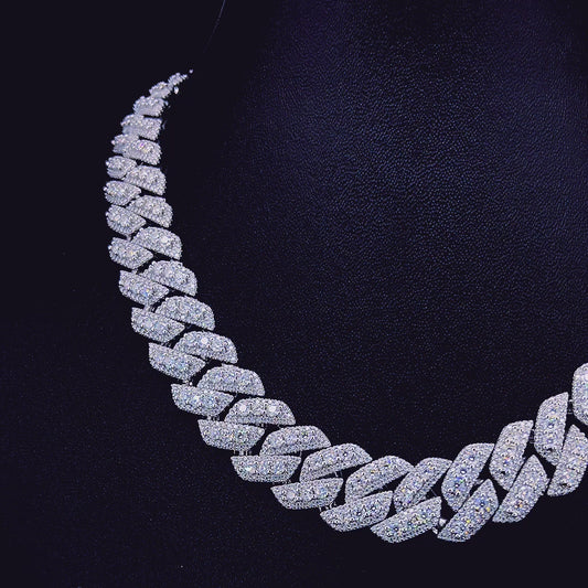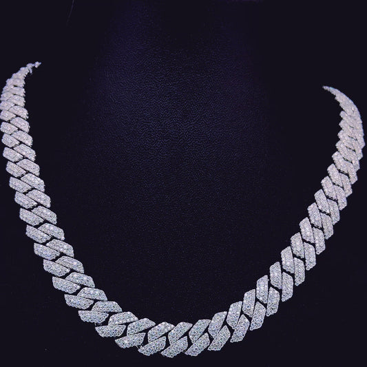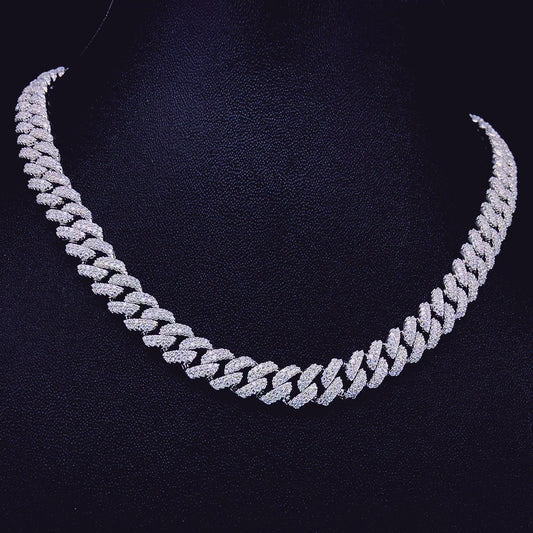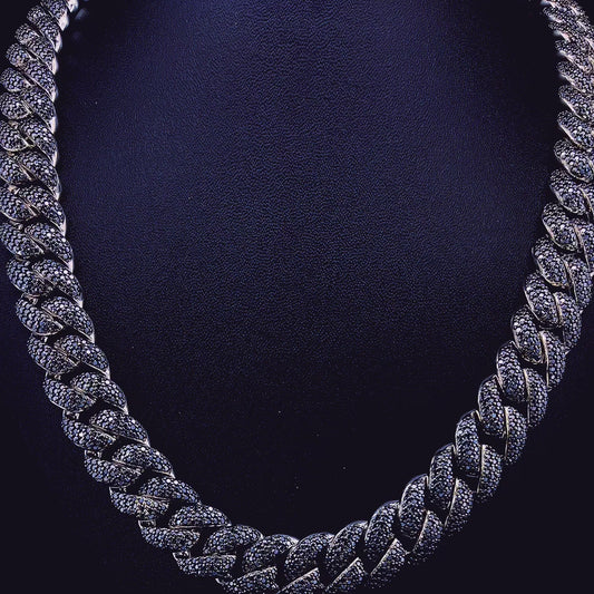 Sterling Silver Moissanite Black Cuban Chain 15mm